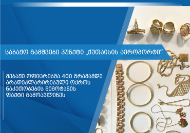 ქუთაისის აეროპორტში დიდი ოდენობით არადეკლარირებული ოქროს ნაკეთობების შემოტანის ფაქტები აღკვეთეს