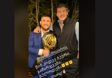 ქალაქ თბილისის მერი, კახა კალაძე, UFC-ის ქართველ მებრძოლთან, მერაბ დვალიშვილთან ერთად გადაღებულ ფოტოს აქვეყნებს და მას ამხნევებს. დედაქალაქის მერის განცხადებით, დვალიშვილს წინ კიდევ ბევრი გამარჯვება ე…