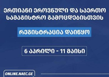 2026 წლის ერთიანი ეროვნული და საერთო სამაგისტრო გამოცდებისთვის რეგისტრაცია დაიწყო და 11 მაისის, 18:00 საათამდე გაგრძელდება