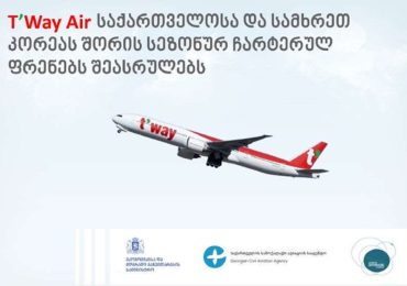 ავიაკომპანია “T’way Air“-ი საქართველოსა და კორეის რესპუბლიკას შორის სეზონურ ჩარტერულ ფრენებს შეასრულებს