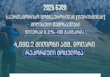 საქართველოს ეკონომიკისა და მდგრადი განვითარების სამინისტროს ინფორმაციით, 2025 წელი ტურიზმის ინდუსტრიისთვის რეკორდული იყო მიღებული შემოსავლების კუთხით. უწყების ცნობით, გასულ წელს მოგზაურობიდან (ტურიზმი…