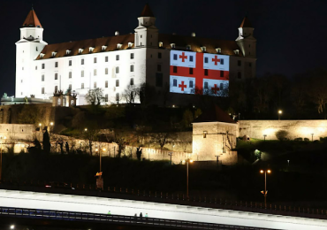 საქართველოს დელეგაციის პატივსაცემად, ბრატისლავას ციხესიმაგრე საქართველოს დროშის ფერებში განათდა