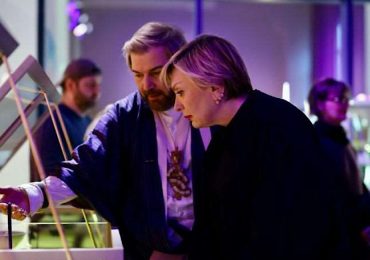 თინათინ რუხაძე ქართველი მხატვრების, იური და ვიკა ბერიშვილების ნამუშევრების გამოფენის – „მამა-შვილის“ გახსნას დაესწრო