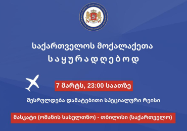 საქართველოს მთავრობის გადაწყვეტილებით, 7 მარტს მასკატიდან თბილისის მიმართულებით სპეციალური რეისი განხორციელდება