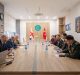 თინათინ რუხაძე ქართველი მხატვრების, იური და ვიკა ბერიშვილების ნამუშევრების გამოფენის – „მამა-შვილის“ გახსნას დაესწრო