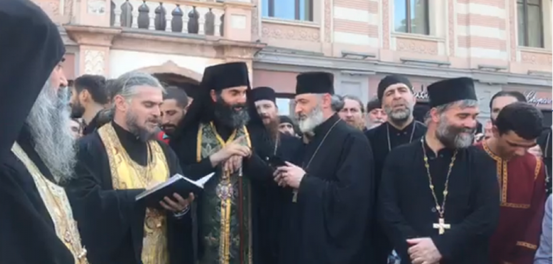 სამების საკათდრო ტაძრიდან წამოსული სასულიერო პირები და მრევლი თბილისის საკრებულოსთან იმყოფება. სასულიერო პირები საკრებულოსთან პარაკლისს აღავლენენ.