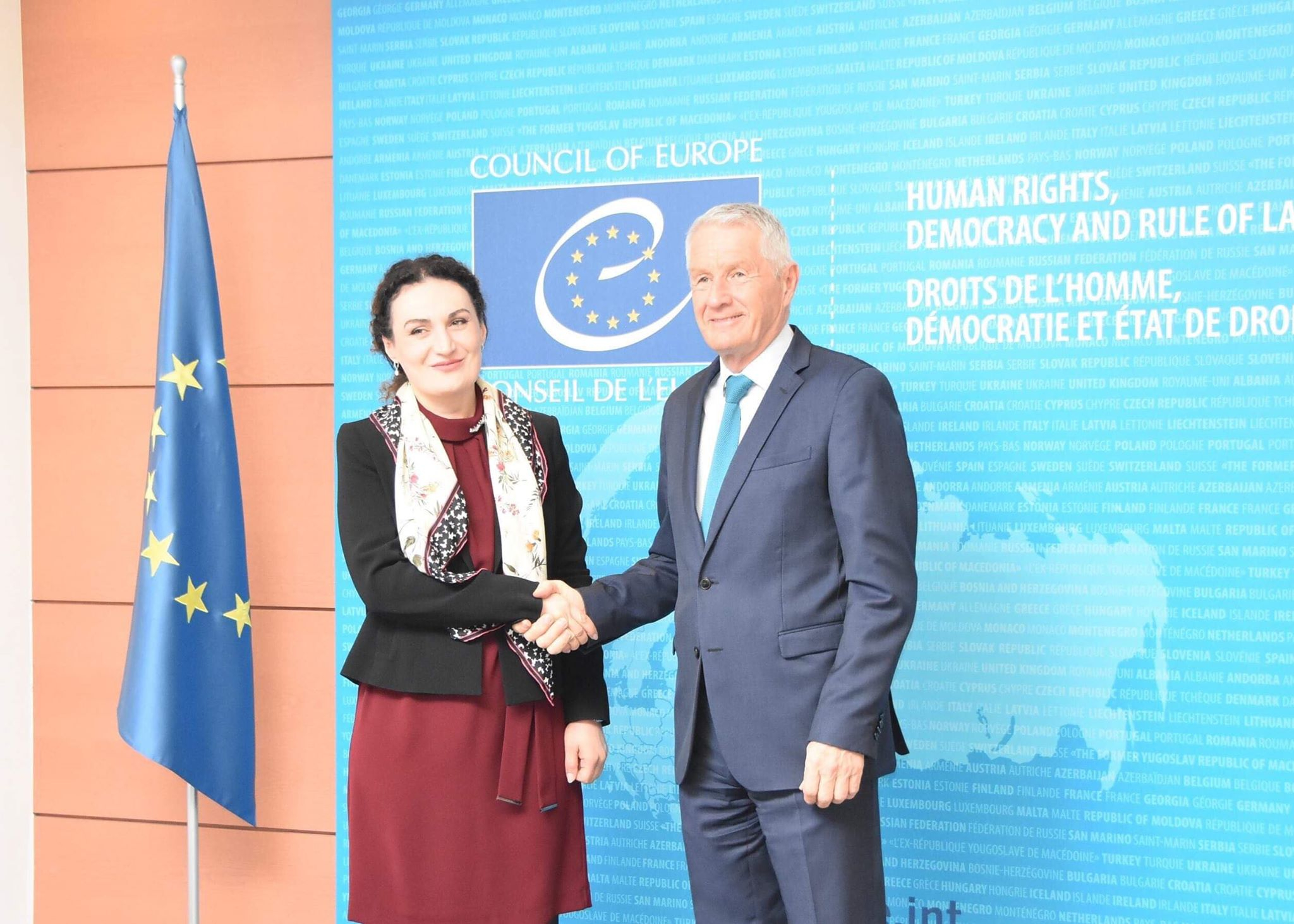 ევროპის საბჭოს გენერალურ მდივანს სახელმწიფო მინისტრმა მადლობა, კონსოლიდირებული ანგარიშისთვის გადაუხადა, რომელიც ოკუპირებულ ტერიტორიებზე არსებული ვითარების შესახებ რეგულარულად გამოიცემა და უმნიშვნელოვანესია ამ პრობლემის შესახებ რეალური სურათის შესაქმნელად საერთაშორისო საზოგადოებისთვის. ,,ირაკლი კვარაცხელიას გარდაცვალება გაურკვეველ ვითარებაში და უკანონო პატიმრობისას რა თქმა უნდა არის ის მძიმე და ტრაგიკული შემთხვევა რომელიც ჩვენ გვქონდა ბოლო პერიოდში. ვისაუბრეთ ასევე წლის დასაწყისიდან ერთი თვის განმავლობაში აფხაზეთის, ხოლო 2 თვის განმავლობაში ცხინვალის მიმართულებით მოძრაობის ფაქტობრივად სრულ ჩაკეტვაზე, რამაც ძალიან შეუშალა ხელი მოსახლეობას, რომ სასიცოცხლოდ მნიშვნელოვანი ინტერესები დაეკმაყოფილებინა. ვისაუბრეთ იმაზე, რომ ზოგადად მზარდი არის წნეხი ოკუპაციის პირობებში, განსაკუთრებით აფხაზეთისა და ცხინვალის რეგიონში მცხოვრებ მოსახლეობაზე, გალში და ახალგორში მცხოვრები ქართველების მიმართ კიდევ უფრო მეტი დისკრიმინაციული ზომები ტარდება და ამ ვითარებაში აუცილებელია საერთაშორისო ყურადღების მაქსიმალურად მობილიზება, კრიტიკულად მნიშვნელოვანია ის, რომ პირველი იყოს ინფორმაცია, მეორე ის, რომ ჩვენ გვქონდეს დღის წესრიგში საერთაშორისო უსაფრთხოების მექანიზმები, მათ შორის ადამიანის უფლებების დაცვის მექანიზმების წვდომის საკითხი. მესამე ის, რომ გადავდგათ კონკრეტული ნაბიჯები ერთის მხრივ რუსეთთან მიმართებაში დეოკუპაციის, ხოლო მეორეს მხრივ იგივე ხალხთა შორის კონტაქტების წახალისებისთვის.“-განაცხადა ქეთევან ციხელაშვილმა.