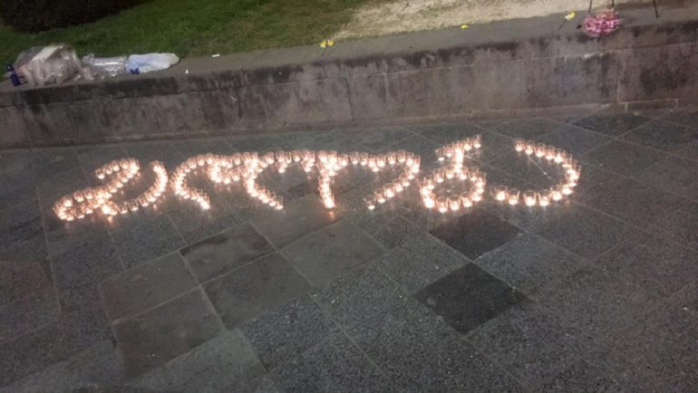 მადლობა- ეს სიტყვა 9 აპრილის მემორიალთან ახალგაზრდებმა სანთლებით ასფალტზე დაწერეს. მოქალაქეები და აქტივისტები ამ წუთებში 9 აპრილის მემორიალთან არიან შეკრებილი და ამ დღეს დაღუპულებს პატივს მიაგებენ.