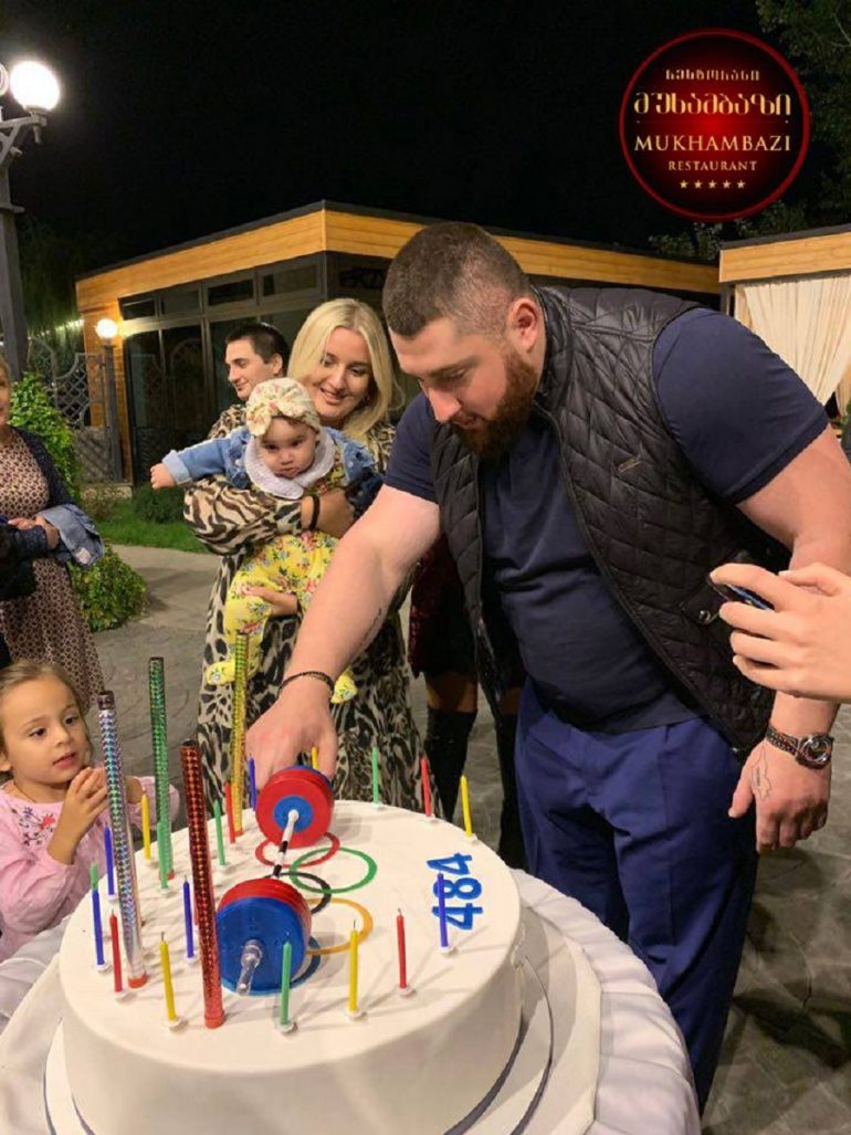 კადრებზე ჩანს, რომ ძალოსანმა ორიგინალურ საიუბილეო ტორტზე სანთლები თავის მცირეწლოვან ქალიშვილთან ერთად ჩააქრო.