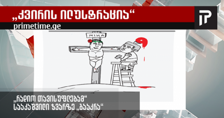 „რადიო თავისუფლება“ ფეისბუქის ოფიციალურ გვერდზე კვირის ფოტო-ილუსტრაციას აქვეყნებს, სადაც ასახულია ჯვარზე გაკრული მიხეილ სააკაშვილი, რომელსაც ლურსმანს გიგა ბოკერია „აჭედებს“.