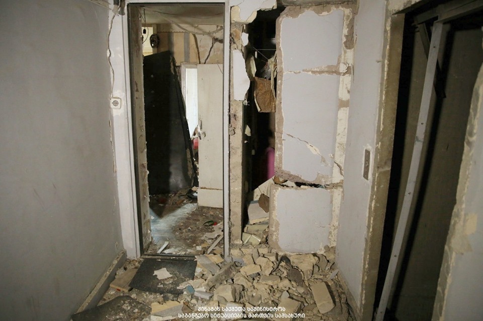 გურამიშვილის გამზირზე მდებარე საცხოვრებელ კორპუსში, სადაც გუშინ აფეთქება მოხდა, გაწმენდითი სამუშაოები მიმდინარეობს