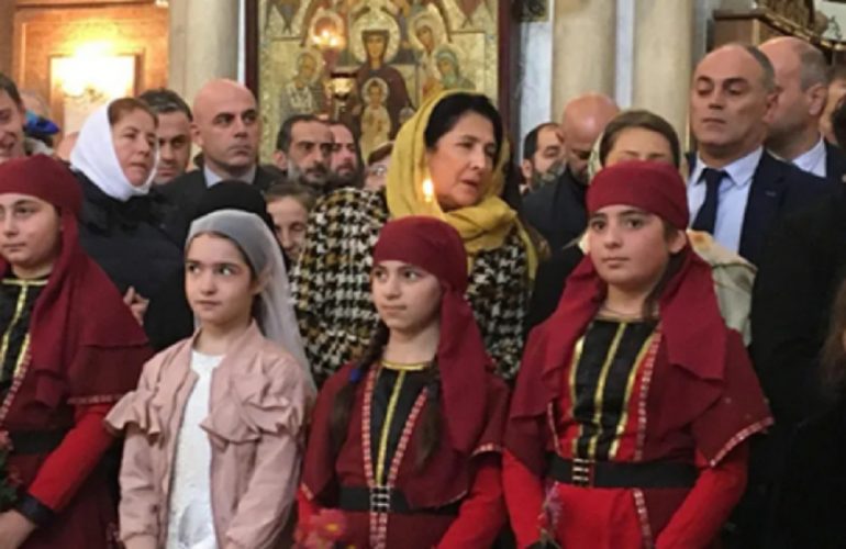 სალომე ზურაბიშვილი სამების საკათედრო ტაძარში საკვირაო წირვას ესწრება
