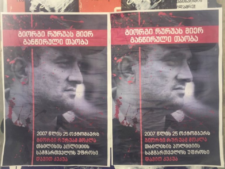 ტელეკომპანია “მთავარი არხის” ერთ-ერთი მეწილის, ცეცხლსასროლი იარაღის მართლსაწინააღმდეგო შეძენა-შენახვა-ტარების ბრალდებით დაკავებული გიორგი რურუას წინააღმდეგ თბილისის ქუჩებში პლაკატები გააკრეს.
