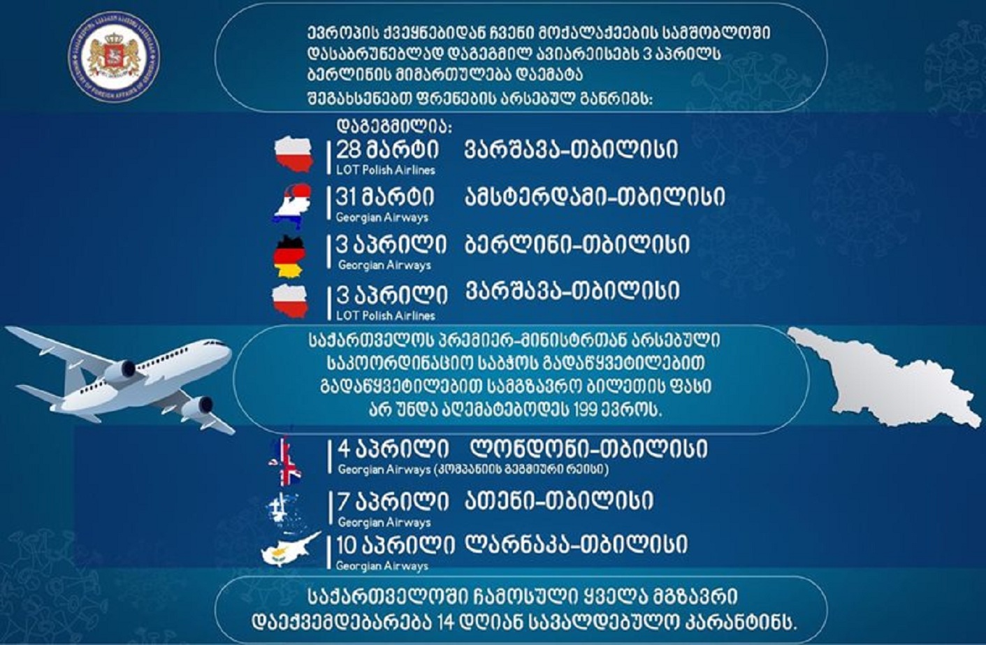ევროპის მიმართულებით დადგენილ ფრენებს 3 აპრილს თბილისი-ბერლინი-თბილისის მიმართულება დაემატა