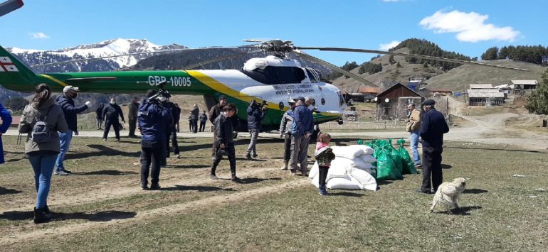 სასაზღვრო პოლიციის ვერტმფრენით კახეთის რწმუნებულმა ირაკლი ქადაგიშვილმა თუშეთის სოფლების 25-მდე ოჯახს ძირითადი მოხმარების საკვები პროდუქტები ჩაუტანა.
