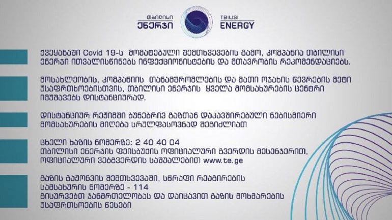 “თბილისი ენერჯის“ მომსახურების ყველა ცენტრი დისტანციურ მუშაობაზე გადადის