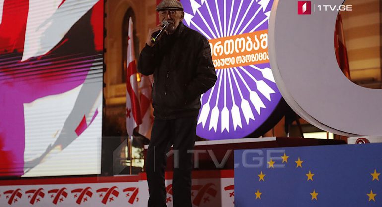 „ნაციონალური მოძრაობის“ სიის პირველმა ნომერმა, პარტიის მიერ ორგანიზებულ აქცია-კონცერტზე დღეს ორი სიმღერა შეასრულა, მათ შორის „თბილისო“, ქართულად და რუსულად.