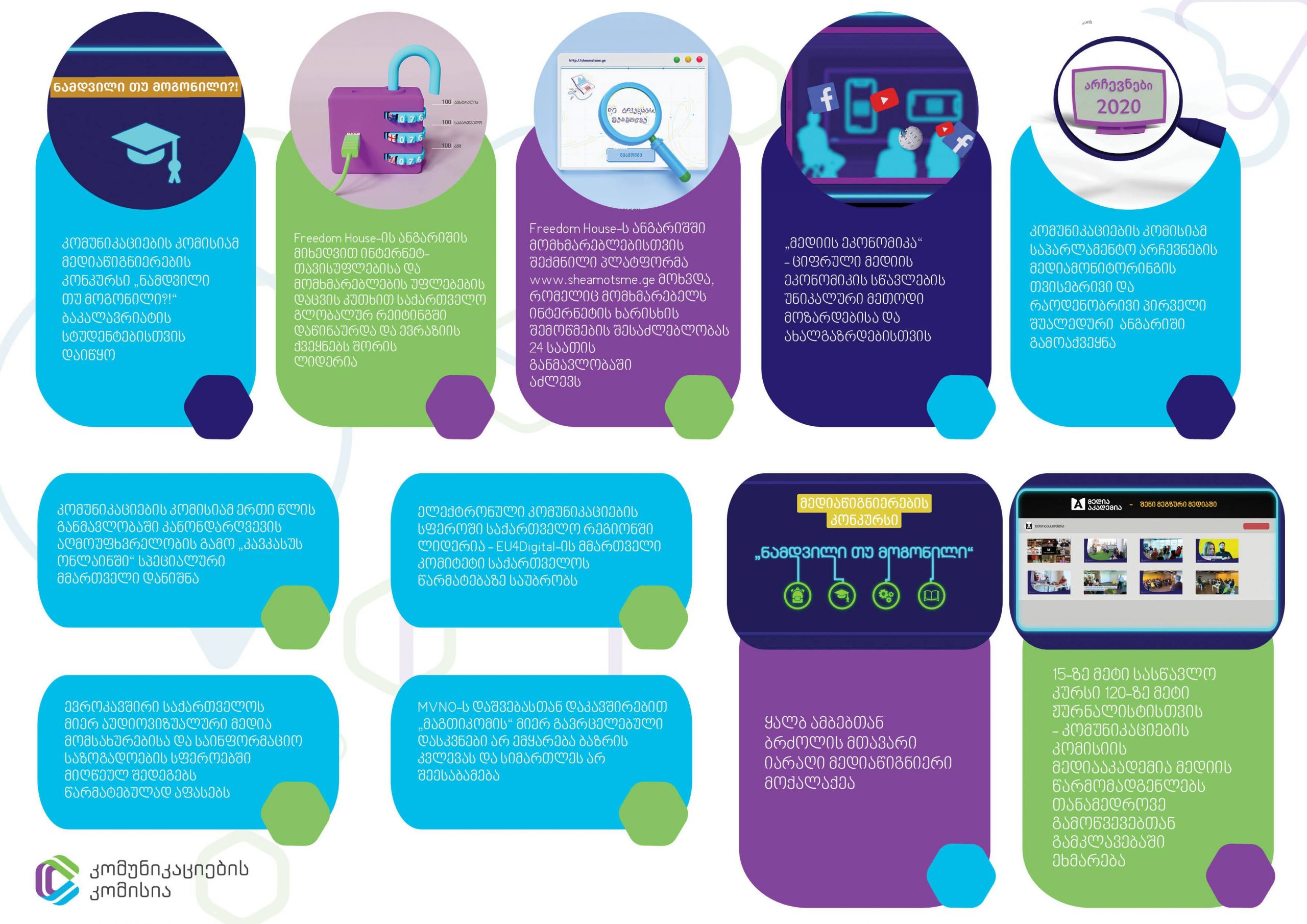 კომუნიკაციების კომისიამ ოქტომბრის თვის ComCom დაიჯესტი გამოაქვეყნა. ოქტომბრის თვის ComCom დაიჯესტში შესულია ისეთი მნიშვნელოვანი საკითხები, როგორიცაა საპარლამენტო არჩევნების წინასაარჩევნო პერიოდის შუალედური მედიამონიტორინგი, კონკურსი „ნამდვილი თუ მოგონილი?!” სტუდენტებისთვის და საერთაშორისო შეხვედრები და კონფერენციები. ოქტომბრის თვეში სატელეკომუნიკაციო დარგსა და კომუნიკაციების კომისიაში განვითარებულ მოვლენებზე საზოგადოებას აქვს შესაძლებლობა სწორედ ComCom დაიჯესტით მიიღოს ამომწურავი ინფორმაცია.
