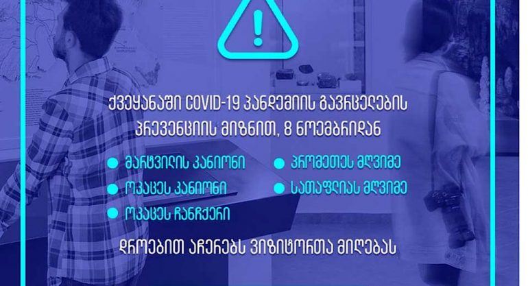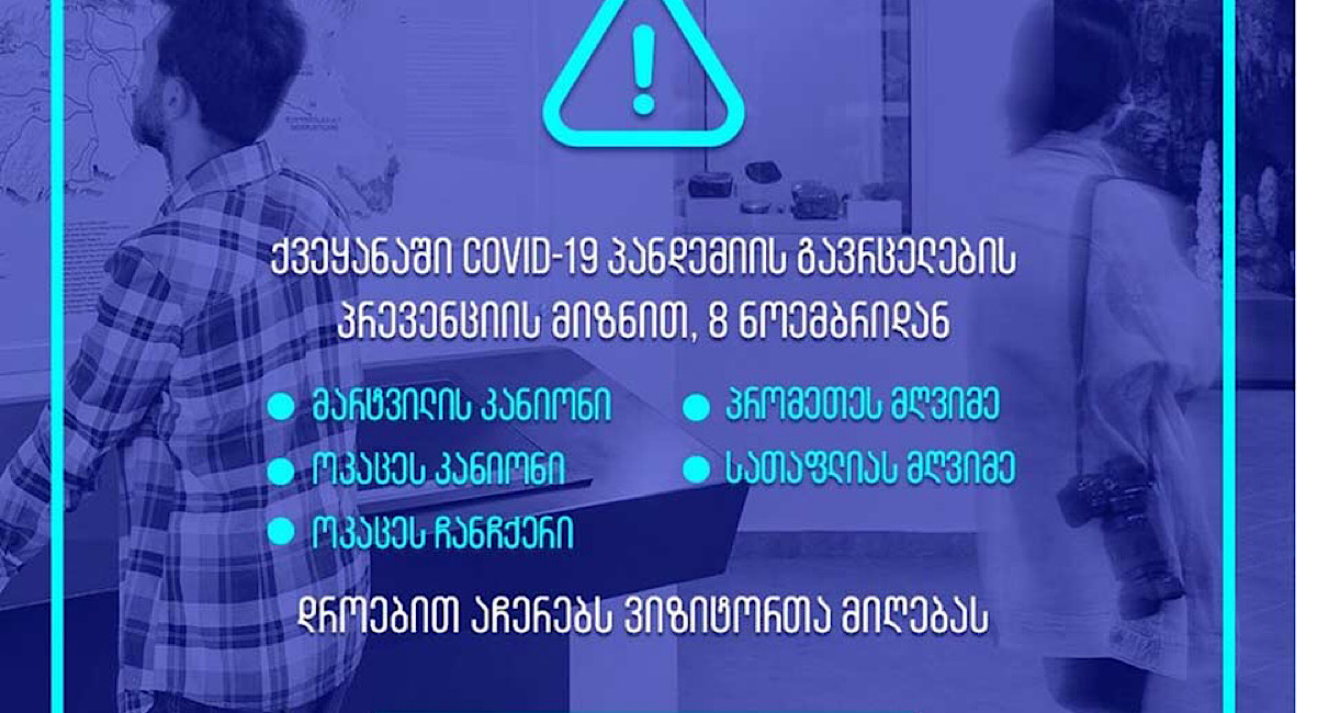 საქართველოს დაცული ტერიტორიების სააგენტოს ინფორმაციით, პანდემიის გავრცელების პრევენციის მიზნით, 8 ნოემბრიდან, საქართველოს ხუთი დაცული ტერიტორია ვიზიტორთა მიღებას დროებით აჩერებს.