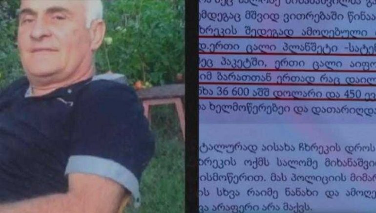ასევე ამოღებულ იქნა, ფულადი თანხა – 36.000 აშშ დოლარი და 450 ევრო, რაც დაილუქა სპეც პაკეტში. სპეც.პაკეტზე გაკეთდა ხელმოწერები და დათარიღდა. ჩხრეკის ოქმი ადგილზე იქნა შევსებული და დეტალურად აისახა ჩხრეკის დროს ასახული ნივთები”- წერია ბრალის დადგენილებაში.
