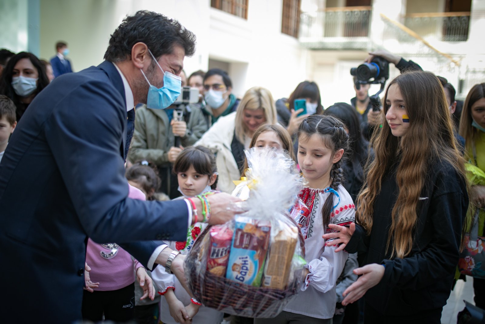 „თქვენი პატარები ყოველგვარი საფასურის გარეშე შეგიძლიათ მიიყვანოთ თბილისის საბავშვო ბაგა-ბაღებში და ამის ორგანიზებას უზრუნველყოფს ჩემი მოადგილე. მშვიდობა მინდა ვუსურვო უკრაინას, უკრაინელ ხალხს და მინდა იცოდეთ, რომ საქართველო, საქართველოს მთავრობა, ქართველი ხალხი ყოველთვის უკრაინის და უკრაინელი ხალხის გვერდით დგას და ასე გაგრძელდება მომავალშიც“, – განაცხადა კახა კალაძემ.