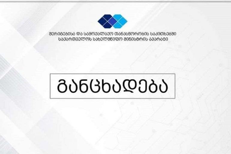 სახელმწიფო მინისტრის აპარატი ცხინვალის რეგიონში ე.წ. “საპრეზიდენტო არჩევნებთან“ დაკავშირებით განცხადებას ავრცელებს