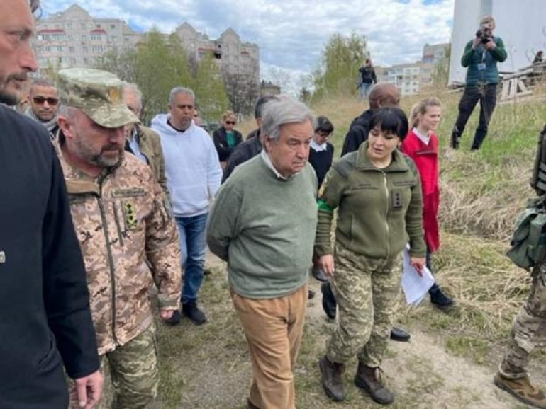 გაერო-ს გენერალური მდივანი ქალაქ ბუჩაშიც იმყოფებოდა, სადაც რუსი ჯარისკაცები მშვიდობიანი მოსახლეობის წინააღმდეგ ჩადენილ სასტიკ ქმედებებში არიან ეჭვმიტანილნი და საერთო საფლავი მოინახულა.