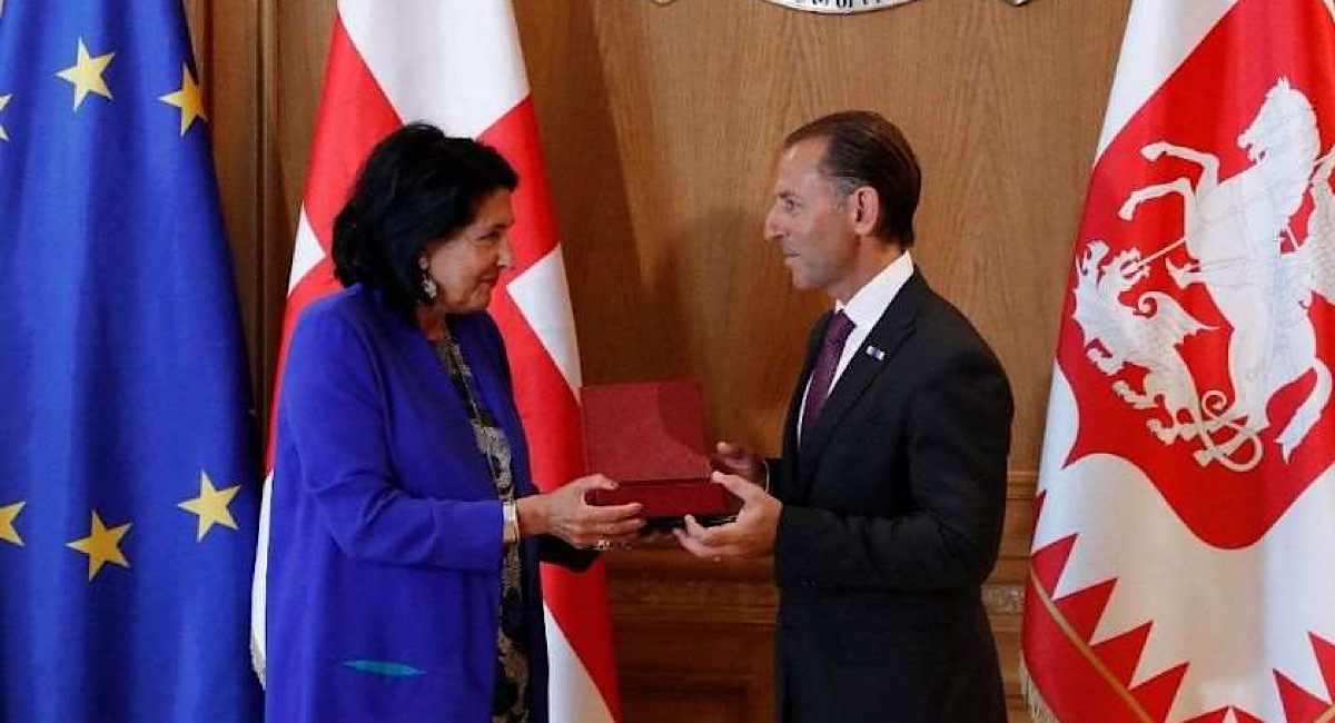 ბედნიერი ვარ, რომ დღეს შემიძლია ქართველი ხალხისა და სახელმწიფოს სახელით ეს ჯილდო გადმოგცეთ“, – განაცხადა საქართველოს პრეზიდენტმა.