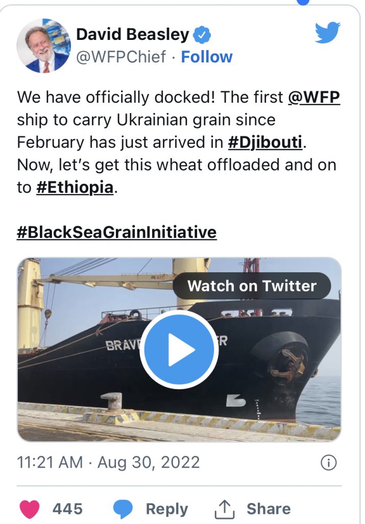 უკრაინული მარცვლეულის პირველი პარტია აფრიკაში ჩავიდა