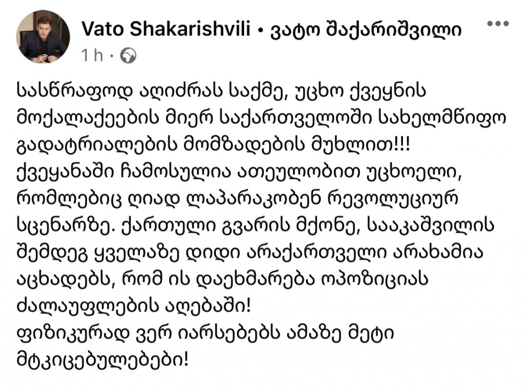 „სასწრაფოდ აღიძრას საქმე, უცხო ქვეყნის მოქალაქეების მიერ საქართველოში სახელმწიფო გადატრიალების მომზადების მუხლით!!!
