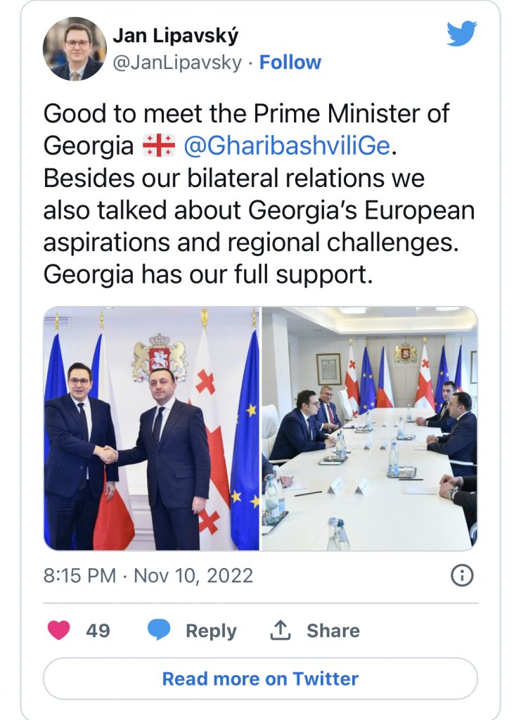 ჩეხეთის საგარეო საქმეთა მინისტრი​ – საქართველოს ჩვენი სრული მხარდაჭერა აქვს