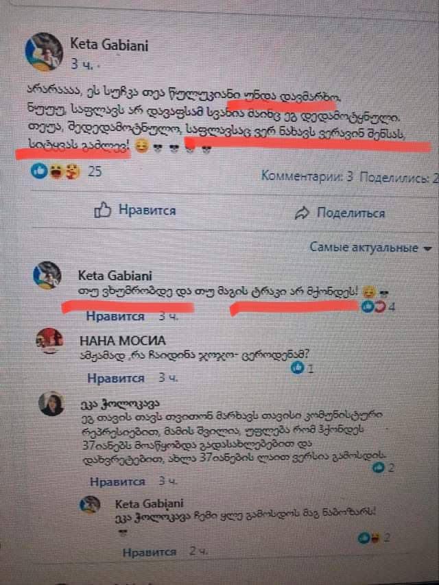 „ეს გახლავთ შარშან, თებერვალში მიღებული მკვლელობის მუქარა, რომელიც ავტორმა მოგვიანებით წაშალა.