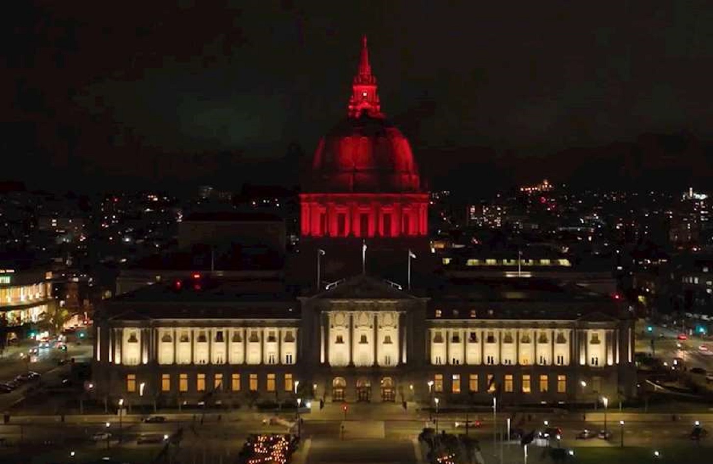 სან-ფრანცისკოს მერიის შენობა, საქართველოს დროშის ფერებში განათდა.