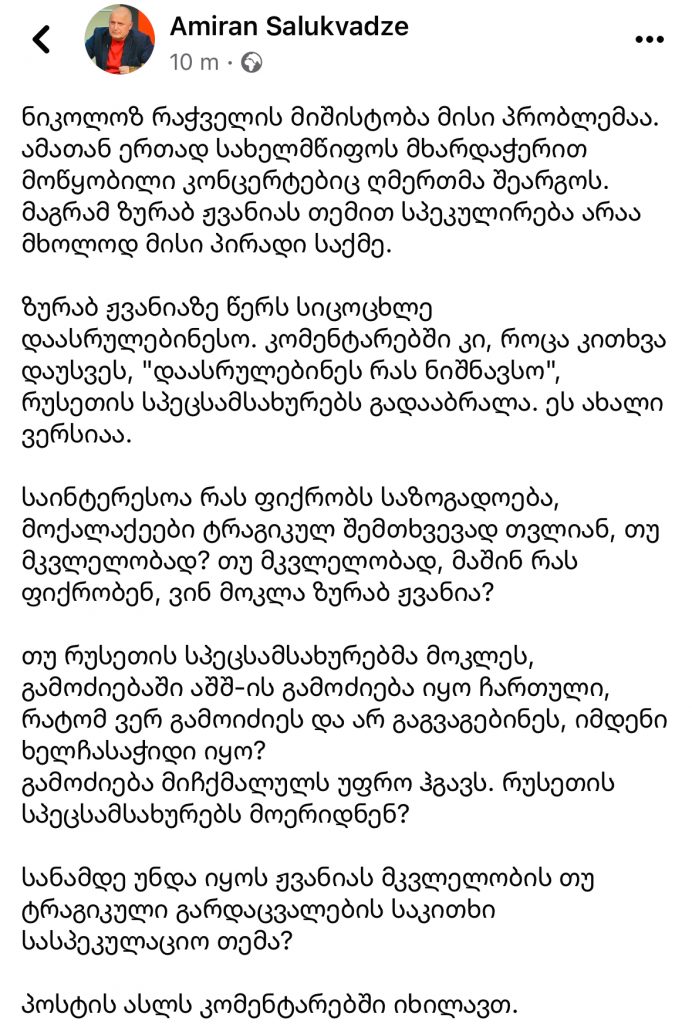 “ნიკოლოზ რაჭველის მიშისტობა მისი პრობლემაა, მაგრამ ზურაბ ჟვანიას თემით სპეკულირება არაა მხოლოდ მისი პირადი საქმე“