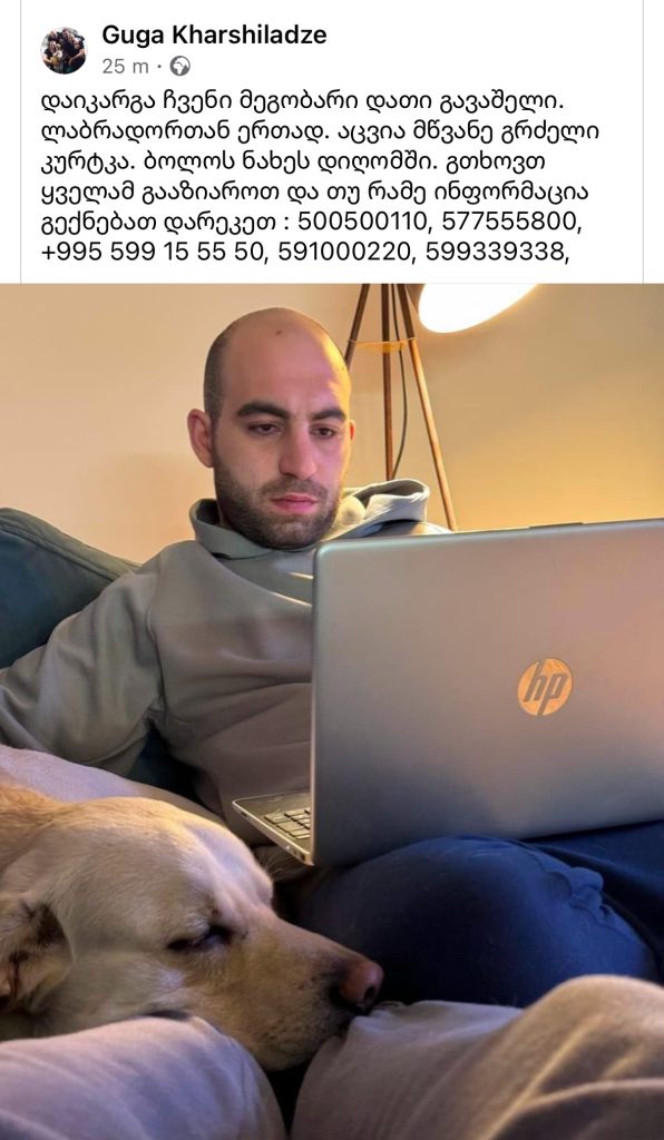 ”დაიკარგა ჩვენი მეგობარი დათი გავაშელი, ლაბრადორთან ერთად“