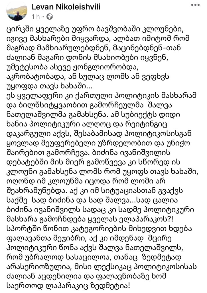 “ დიდი ხანია პოლიტიკური ალღოც და რეიტინგიც დაკარგული აქვს, შესაბამისად, უზრდელობით და უნიჭო შაირებით გამორჩევა”