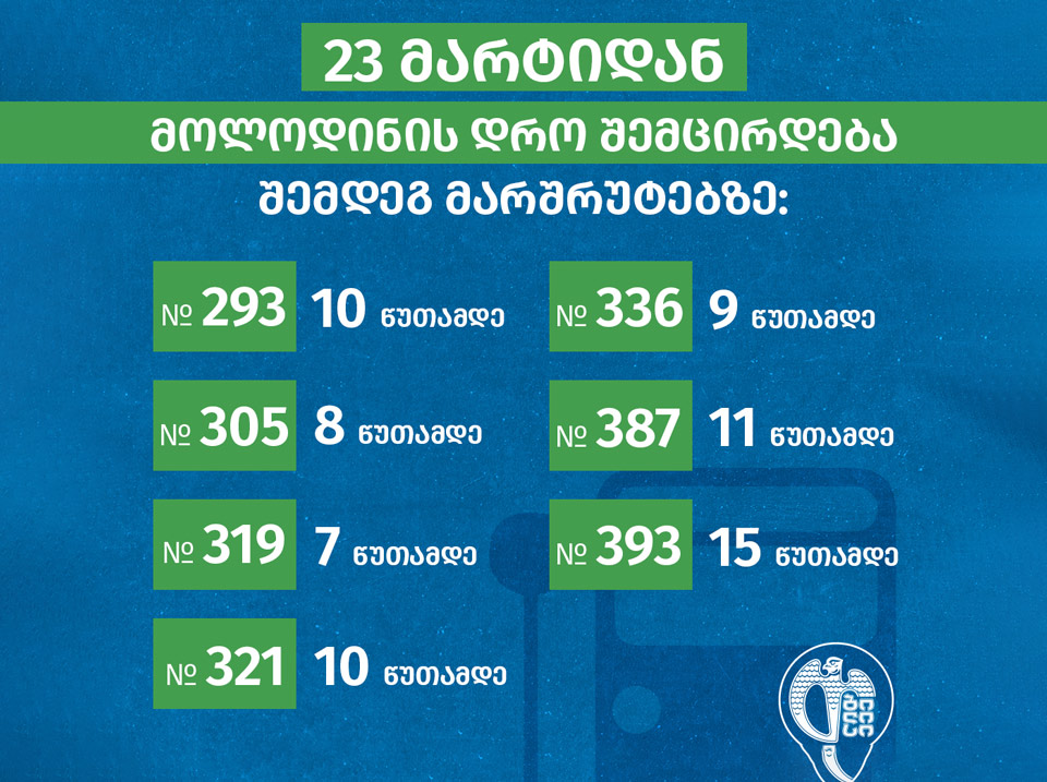 23 მარტიდან საზოგადოებრივი ტრანსპორტის რამდენიმე მარშრუტს ავტობუსები დაემატება და მოცდის ინტერვალი შემცირდება