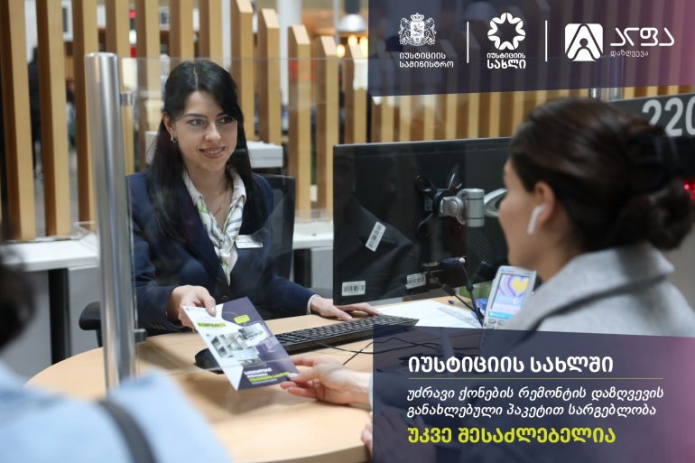 იუსტიციის სახლის მომხმარებლებს საშუალება აქვთ, ქონების რეგისტრაციასთან ერთად, დააზღვიონ საკუთარი უძრავი ქონების რემონტი, კომფორტულ გარემოში, ერთ სივრცეში, სწრაფად და მარტივად.