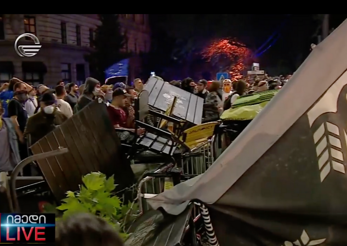 რუსთაველის გამზირზე „გამჭვირვალობის კანონის“ საწინააღმდეგო აქციის მონაწილეები გზის ჩახერგვას ბარიკადების მოწყობით ცდილობენ.