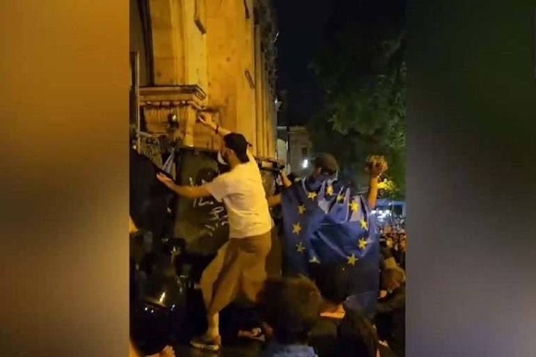 ძალადობის ფაქტები წუხანდელი აქციის მონაწილეების მხრიდან (ვიდეო)