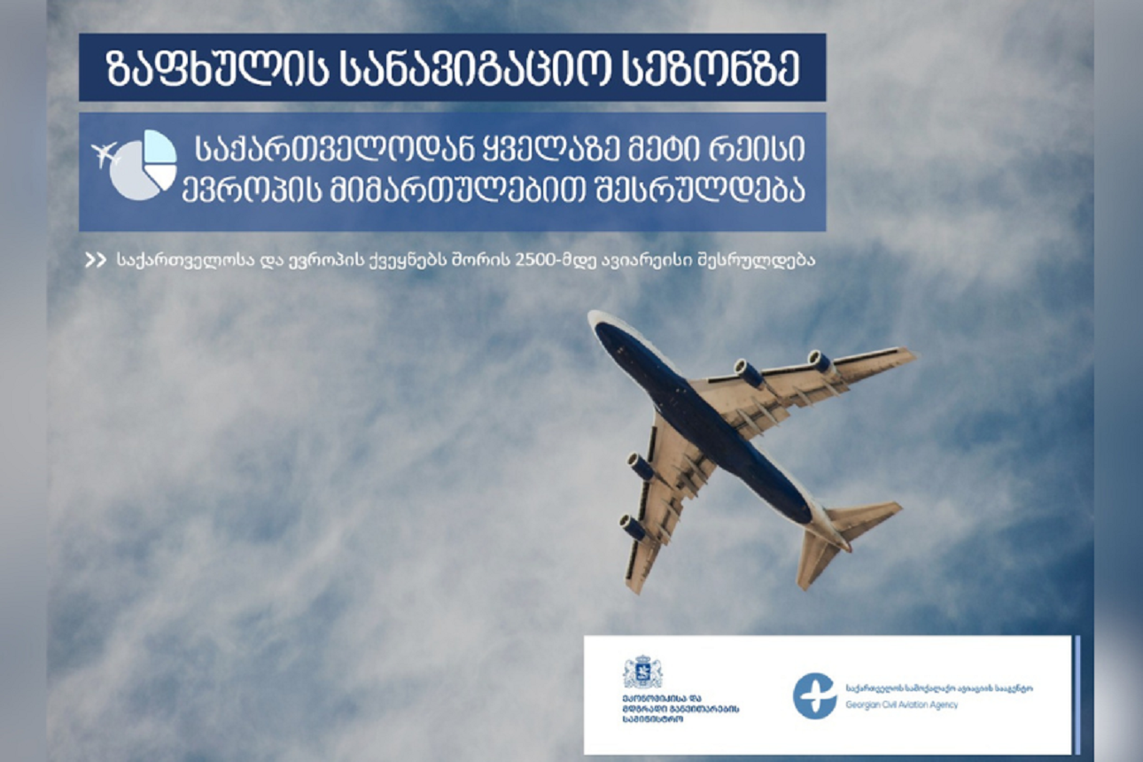 ზაფხულის სანავიგაციო სეზონზე საქართველოსა და ევროპის ქვეყნებს შორის 2500-მდე ავიარეისი შესრულდება
