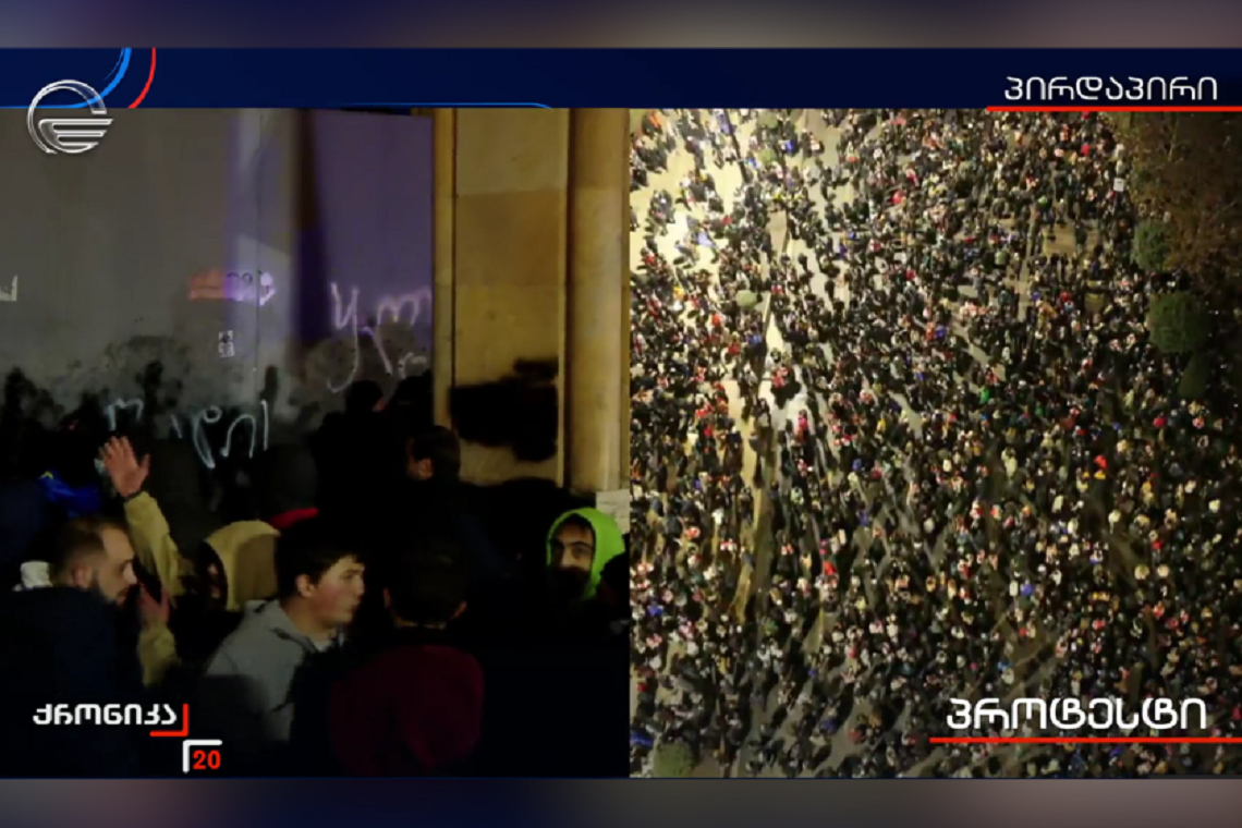 რუსთაველის გამზირზე მორიგი საპროტესტო აქცია მიმდინარეობს. აქციის მონაწილეთა ნაწილი ისევ ცდილობს პარლამენტის შენობასთან რკინის ჯებირის დაზიანებას.