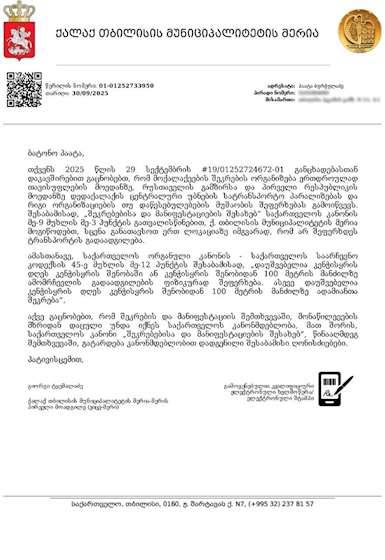 თბილისის მერია პაატა ბურჭულაძის სახელით მერიის ადმინისტრაციაში შესული წერილის შინაარსს, ასევე საპასუხო გზავნილს ასაჯაროებს.