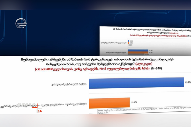 „ლელოს“ დაკვეთით ჩატარებულ საზოგადოებრივი აზრის კვლევაში როგორც პარტიულ ასევე კანდიდატების რეიტინგში „ქართული ოცნება“ ლიდერობს