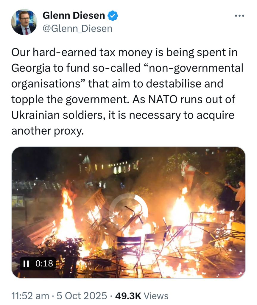 “ჩვენი ჯაფით ნაშოვნი გადასახადები საქართველოში ე.წ. არასამთავრობო ორგანიზაციების დაფინანსებაზე იხარჯება, რომლებიც დესტაბილიზაციას და მთავრობის დამხობას ცდილობენ”