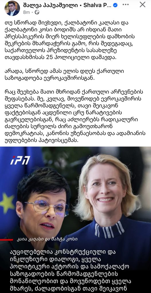 “მოვუწოდებ ევროკავშირის ყველა წარმომადგენელს, თავი შეიკავონ ფაქტებისგან აცდენილი ცრუ ნარატივების გავრცელებისგან”