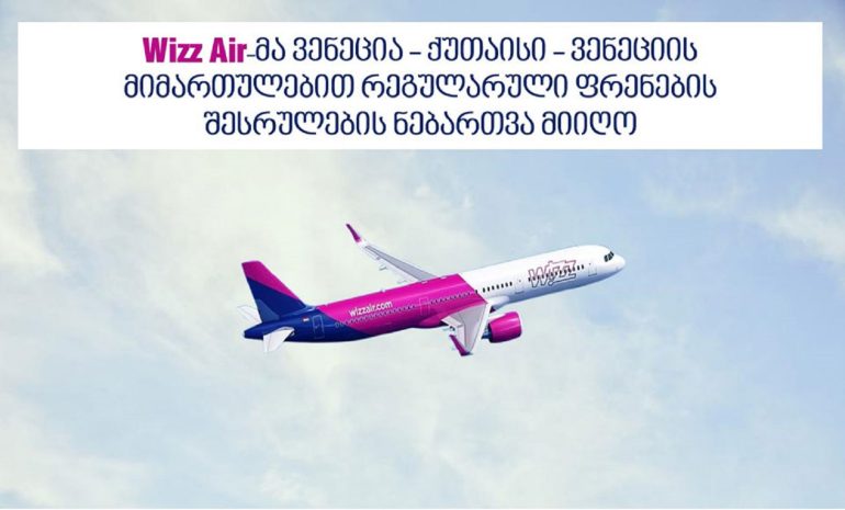 ავიაკომპანია „ვიზეარმა“ ვენეცია-ქუთაისი-ვენეციის მიმართულებით რეგულარული ფრენების შესრულების ნებართვა მიიღო