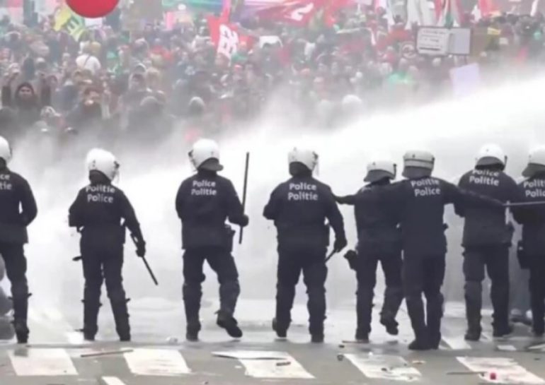 პოლიციამ ბრიუსელში საპროტესტო აქციის მონაწილეების წინააღმდეგ ცრემლსადენი აირი და წყლის ჭავლი გამოიყენა. მობილიზებული იყო სპეცრაზმი.