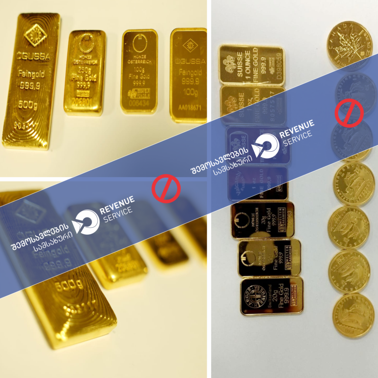 თბილისის აეროპორტში ერთ კილოგრამზე მეტი არადეკლარირებული ოქროს ზოდებისა და მონეტების გატანის ფაქტები აღიკვეთა