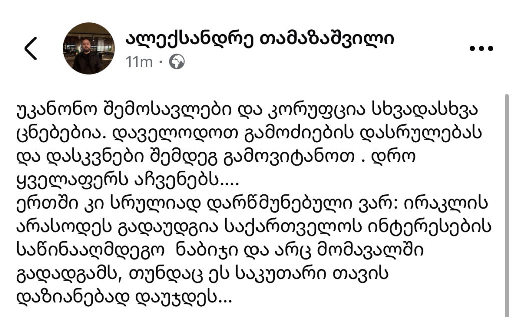 “უკანონო შემოსავლები და კორუფცია სხვადასხვა ცნებებია, დაველოდოთ გამოძიების დასრულებას და დასკვნები შემდეგ გამოვიტანოთ”